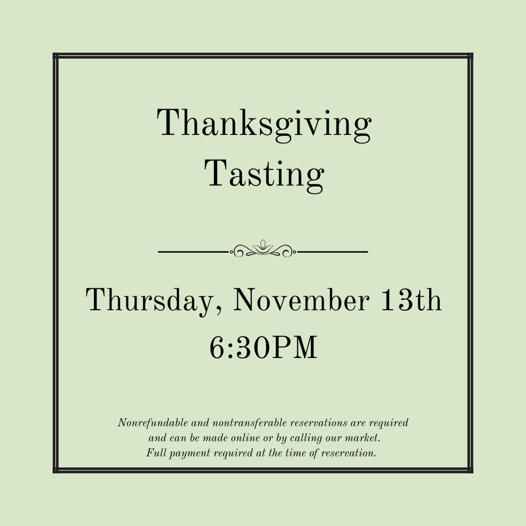 Thanksgiving Tasting - November 13th @ 6:30pm